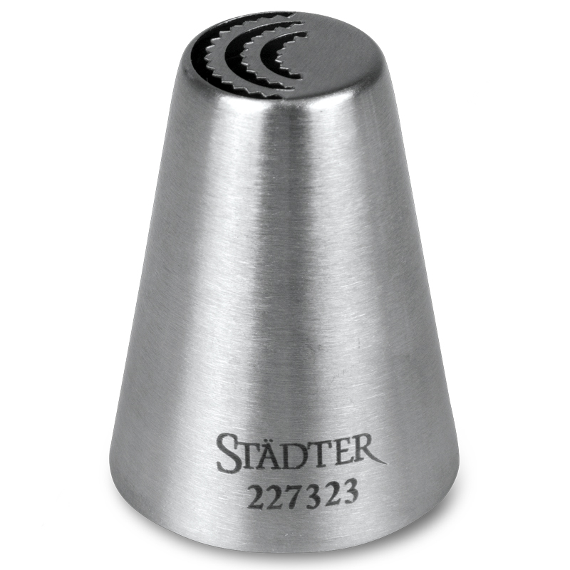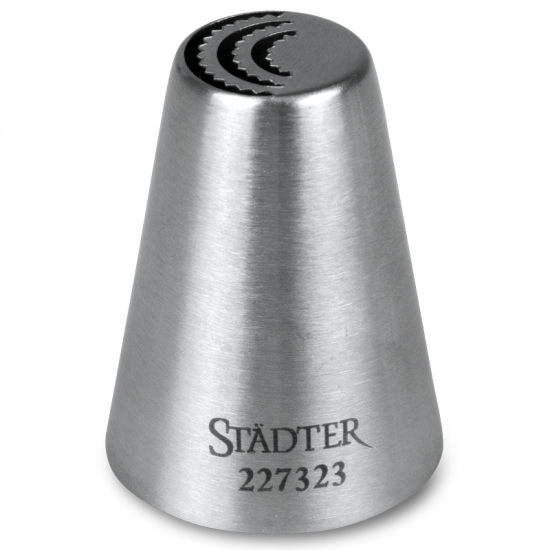 Chrysanthemenentülle gezackt der Spritztüllen-Serie Fine Line von Städter in Profi-Qualität. Kein Randwulst, feinste Dekorationen durch exakte Konturen. Die Spritztüllen sind aus Edelstahl gefertigt und aus einem Stück gezogen - sie haben keine störende Naht.